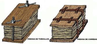 - Ya que se tenga la pulpa en forma de hoja, se retira de los bastidores y se coloca en una prensa por varios minutos para eliminar el exceso de agua.
